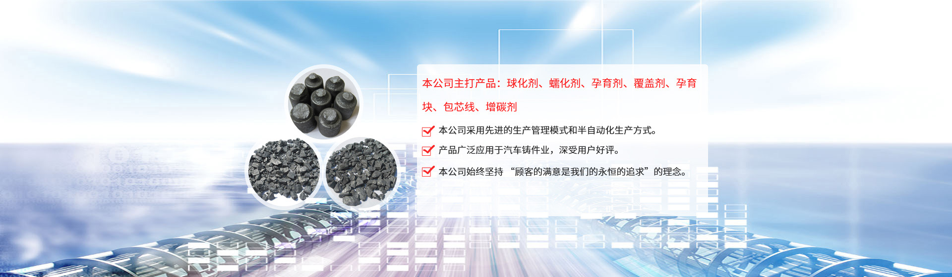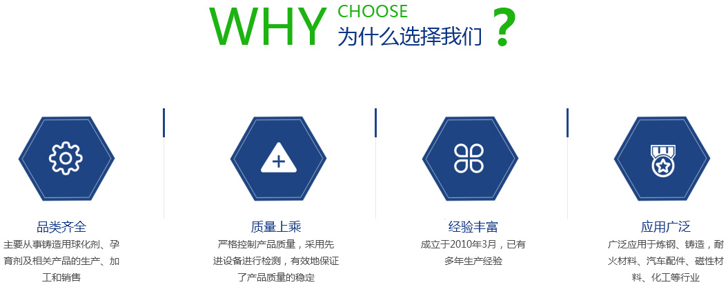 江蘇旦晨新材料科技有限公司、鎮(zhèn)江市勤成鑄造材料有限公司于2010年3月,成立于美麗的水上花園城市—江蘇揚(yáng)中,公司是一股份制企業(yè),注冊(cè)資本為200萬(wàn)人民幣,主要從事鑄造用球化劑、孕育劑及相關(guān)產(chǎn)品的生產(chǎn)、加工和銷(xiāo)售。 公司引進(jìn)日本企業(yè)的生產(chǎn)管理模式,半自動(dòng)化生產(chǎn)方式。目前生產(chǎn)能力:球化劑250T/月、孕育劑300T/月、鑄造相關(guān)品200T/月。為嚴(yán)格控制產(chǎn)品質(zhì)量,公司采用國(guó)內(nèi)的ICP-AES等離子體發(fā)射光譜儀對(duì)采購(gòu)原